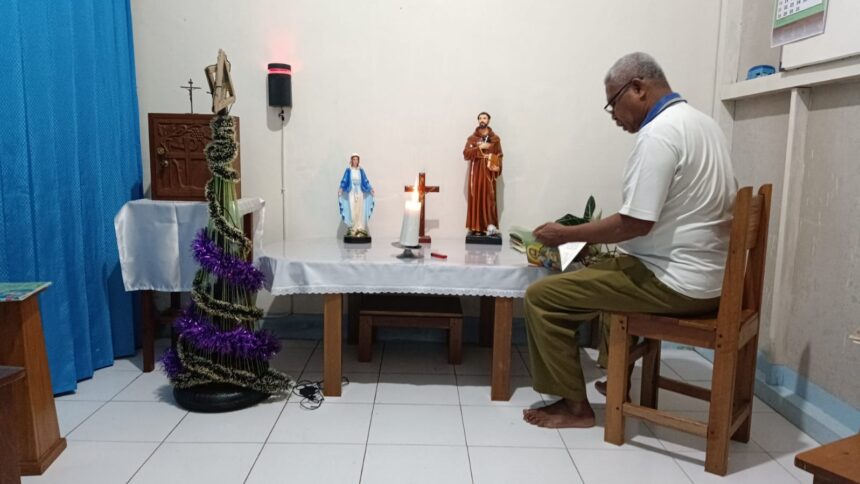 Ditengah keheningan rumah itu, saya dengan kesibukan saya sendiri dan Bruder Gerardus juga dengan kesibukannya menangkap ikan dengan jaring. “Kalau mancing nanti lama kita dapat, nah cara terbaik untuk cepat ya dengan jaring. Supaya bisa kita nikmati dulu lah ya,” kata Bruder Gerard sambil bersenandung dengan saudara ikan  peliharaannya.