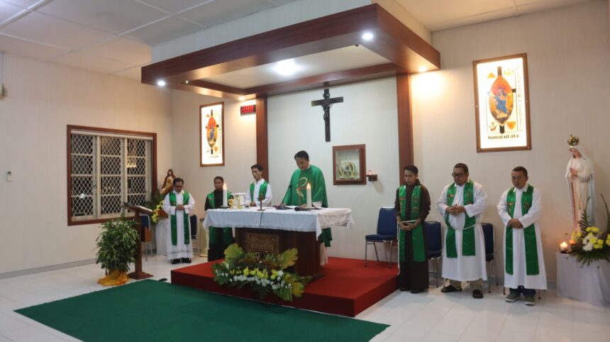 JPIC Kalimantan Barat, Pontianak- Pada Rabu, 23 Agustus 2023 pagi, di kapel Wisma Immaculata, suasana hening terhampar saat Pastor Pionius Hendi OFMCap, dengan semangat dan penuh keyakinan, menyampaikan homili yang mendalam kepada seluruh peserta INFO JPIC.